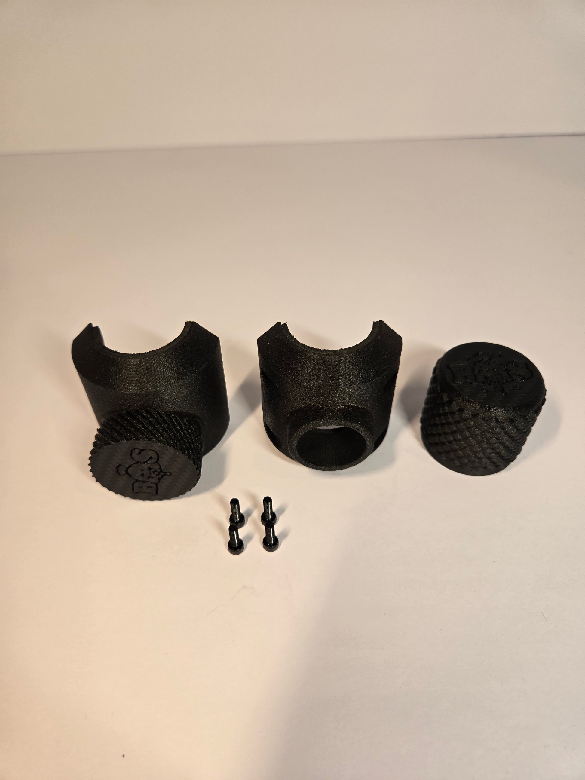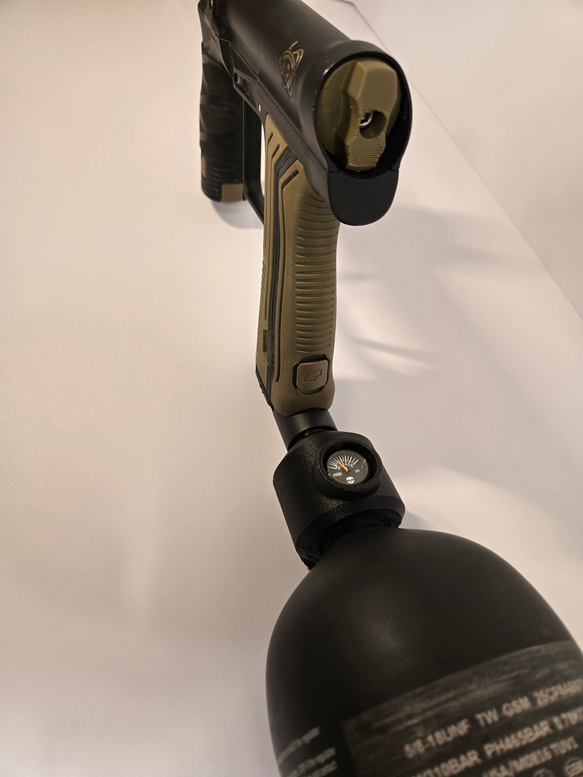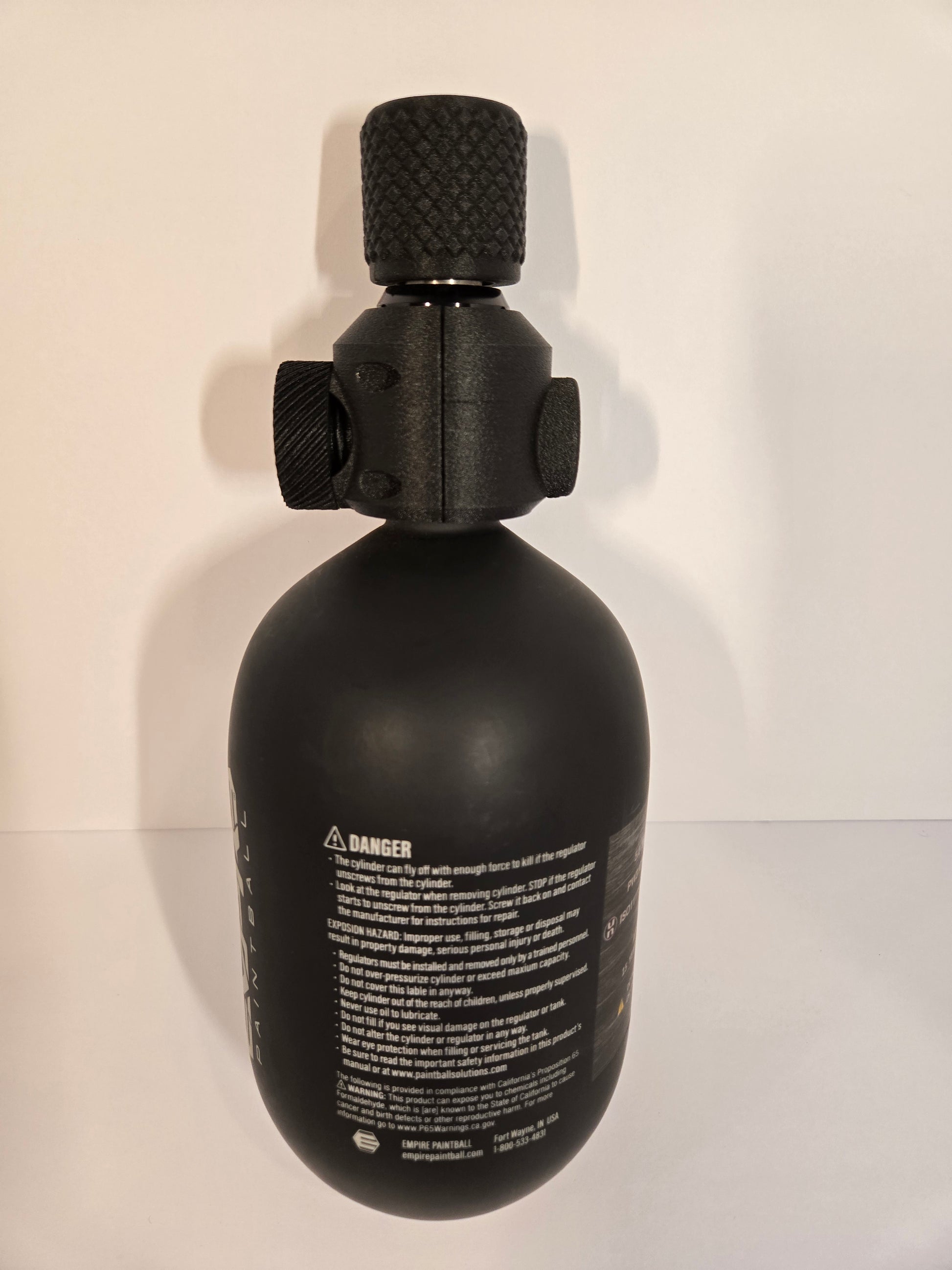 Introducing the REGuard. The first ever answer for complete protection for your tank regulator both on and off the field! Tired of banging your expensive regulator on hard ground and rocks just for your guage/ fill nipple to crack or break off? Are you wasting time and hours between points rebuilding your regs because of trash making its way into your reg and marker? Is mud and filth caking up your reg on rainy days? The REGuard is the remedy! The REGguard is made of strong NPC (Nano Particle Composite) and is designed to be streamlined to your marker that WILL NOT hinder your handling or marker discipline during a game. Internally there is a layer of 3M Neoprene on the inside that seals out moisture/ trash and allows the Regulator to free float on the inside for impacts and shock. The rapid thread fill cap allows for quick access to your fill nipple with deep notches on the side allow for gloved hands to easily disconnect the fill connect collar. The Guage is recessed and prevents side impacts. The REGuard comes with a thread protector for transport when off the field. It also doubles as a degasser when screwed down all the way allowing air to pass through the vent holes on top. The REGuard comes in 2 different forms to fit your particular regulator. MOD1 ( All Ninja Regs, HK HP8, All ELEV8 Regs, and many like regs that are slimmer), MOD2 ( Powerhouse Counterpunch standard, HK Aerolite2, and many more larger diameter regs).